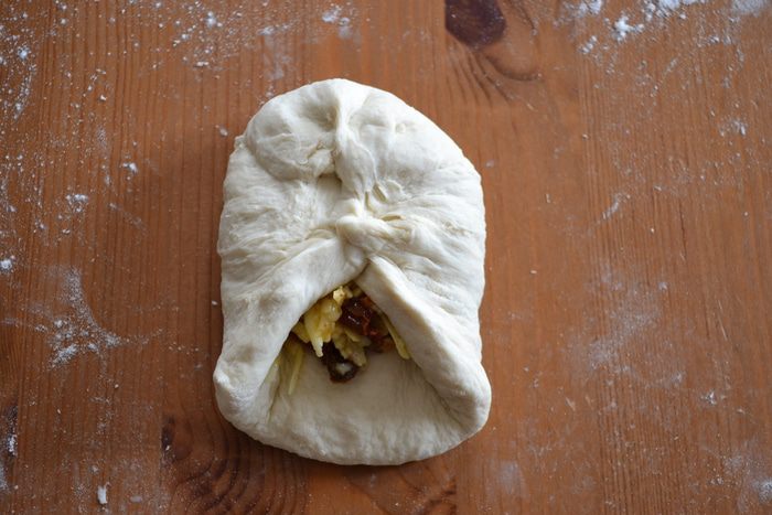И перевернуть швом вниз. Подготовить таким образом все четыре булочки.