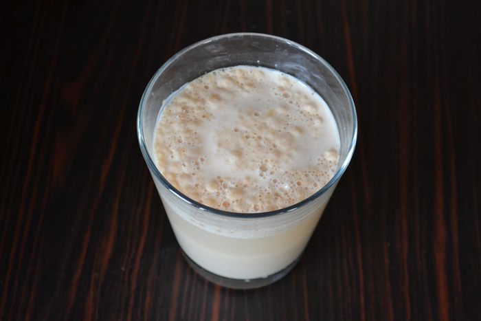 Дрожжи смешать с теплой водой. Отставить на пару минут.