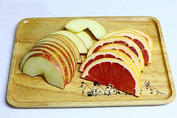 Нарезать грейпфрут и яблоко на дольки.