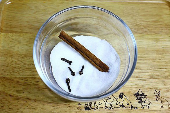 Поместить в кастрюлю сахар, корицу и гвоздику, залить водой и поставить на плиту. Кипятить в течение 5 минут на среднем огне, помешивая до полного растворения сахара.