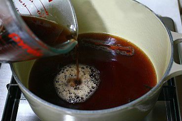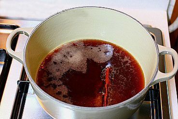 Убавить огонь и добавить вино.