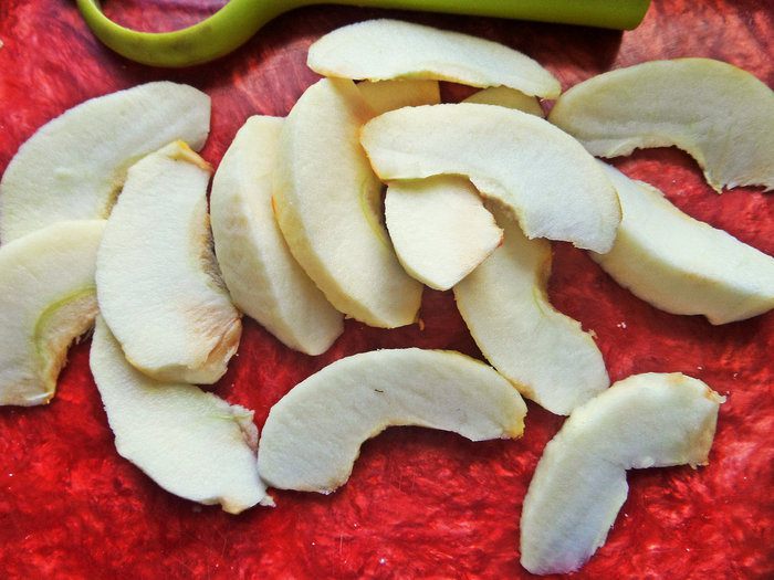 Плотно воткнуть между батоном дольки яблока. Пусть начинка «врастет» в хлеб, будет только вкуснее!