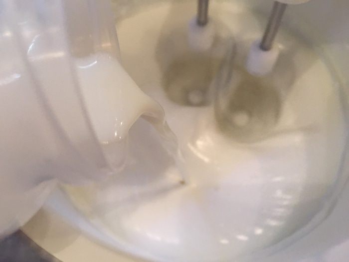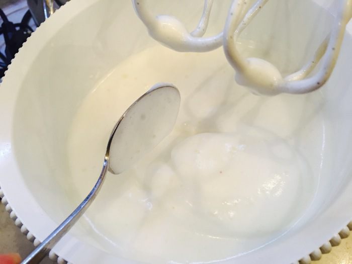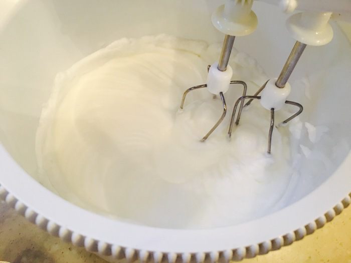 Белки взбиваем миксером долго до крепких пиков.