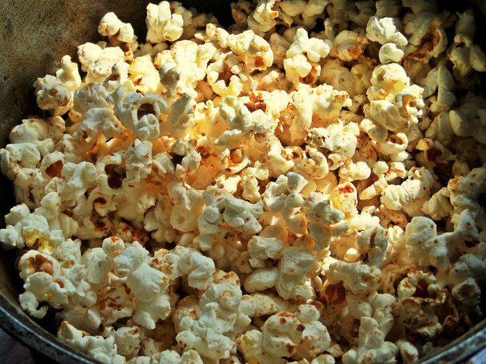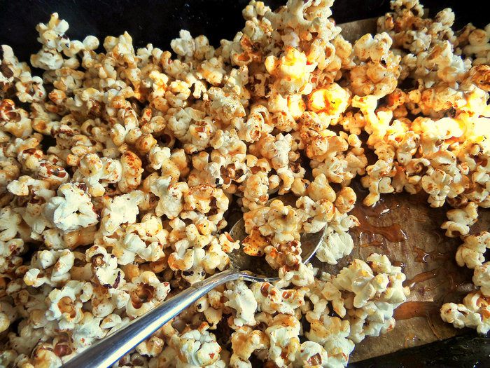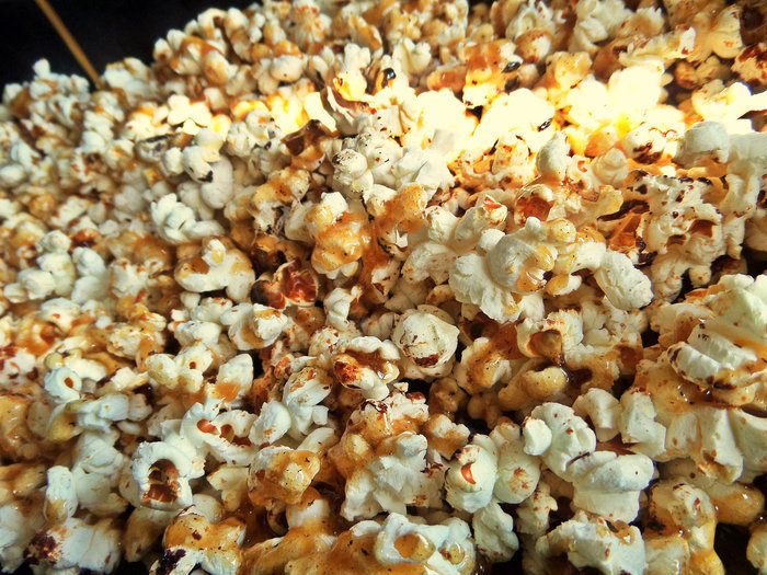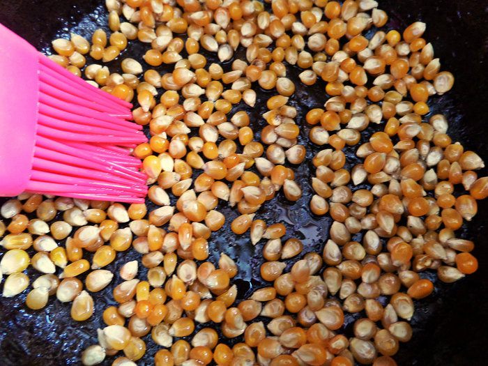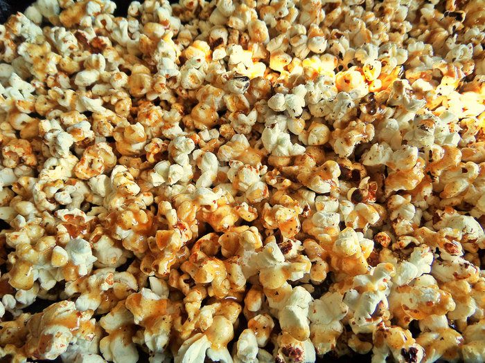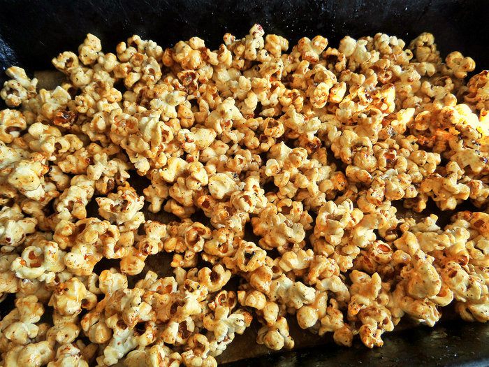 Помещаем в ту же кастрюлю, в которой "стрелял" попкорн, только убрать нераскрытые зерна!