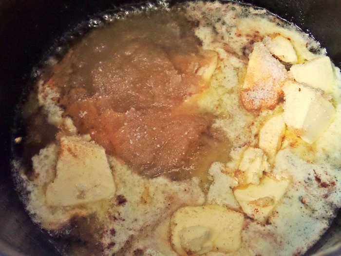 Смешиваем все для карамельного соуса...Вместо меда можно любой сироп. Я использовала сироп от "брусники в меду": http://www.edimdoma.ru/retsepty/76504-brusnika-v-medu