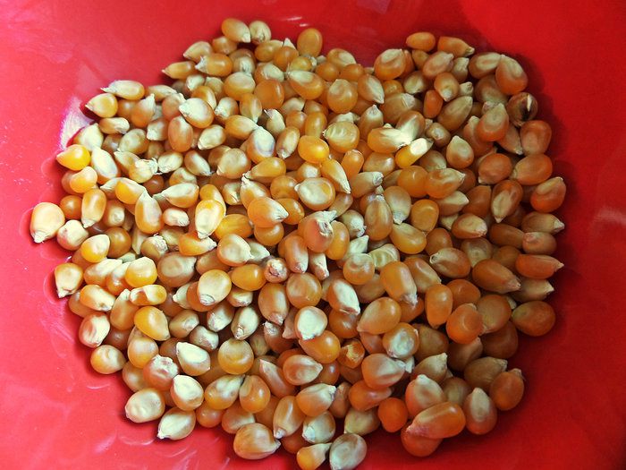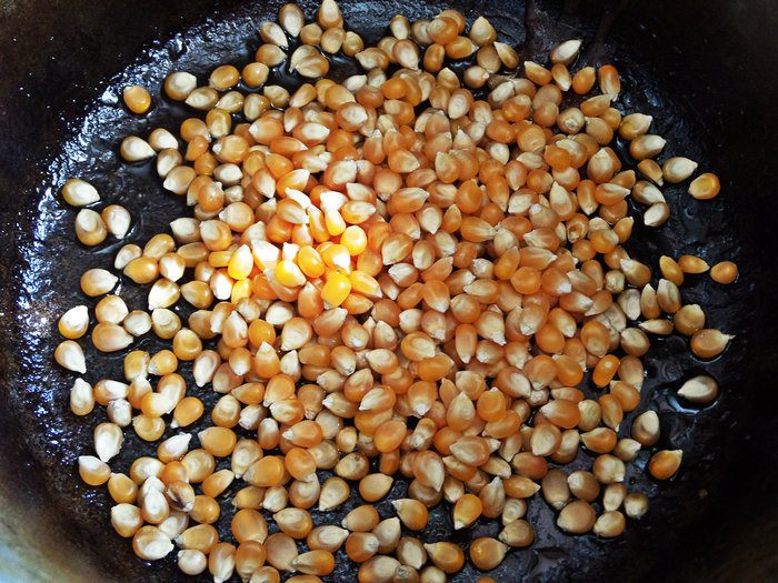 Накаляем на огне чугунную кастрюлю. Высыпаем кукурузу.