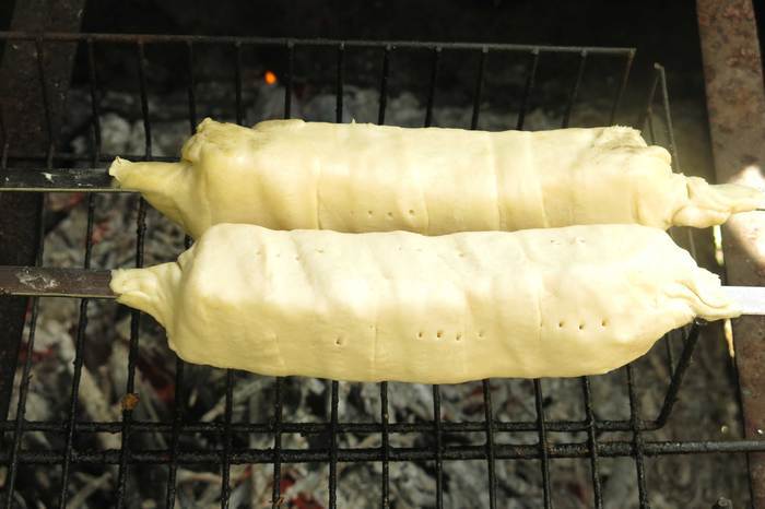 Угли готовы и дают жар, кладем хачапури на решетку. Переворачиваем периодически хачапури, 15 минут и блюдо готово. Смазываем тесто маслом (факультативно) и подаем горячими.