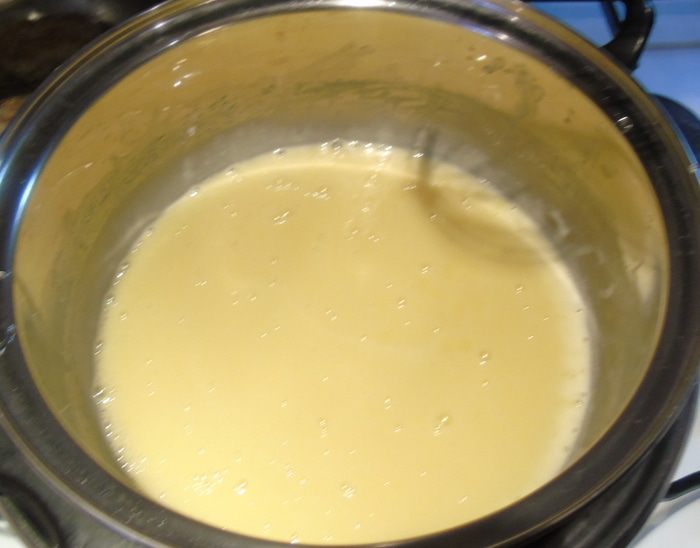 Ставим на водяную баню и помешивая ждем когда масло растопится и масса станет горячей.
