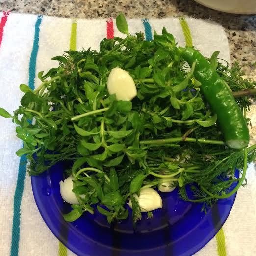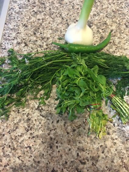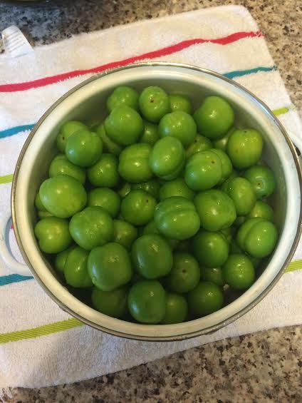 Для соуса «ткемали» вы можете использовать ткемали, а можете как я сделать его из молодой алычи. Молодая алыча не такая кислая, как ткемали и более мясистая. Для соуса нам понадобится зелень «омбало» я ее не смогла найти в списке продуктов, без нее ткемали приготовить нельзя. На 1 кг алычи нам понадобится 2 пучка зелени омбало.