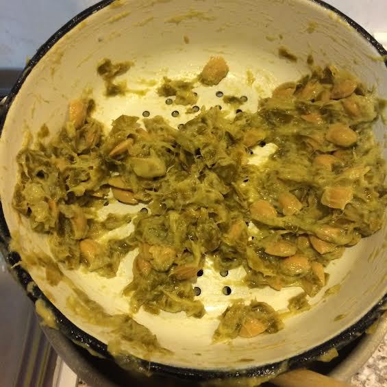 Переложить алычу на дуршлаг и начать перетирать.
