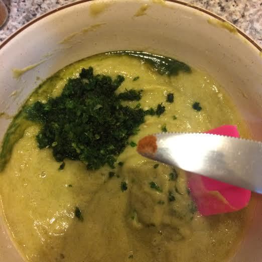 Зелень, чеснок и острый зеленый перец пропустить через мясорубку.