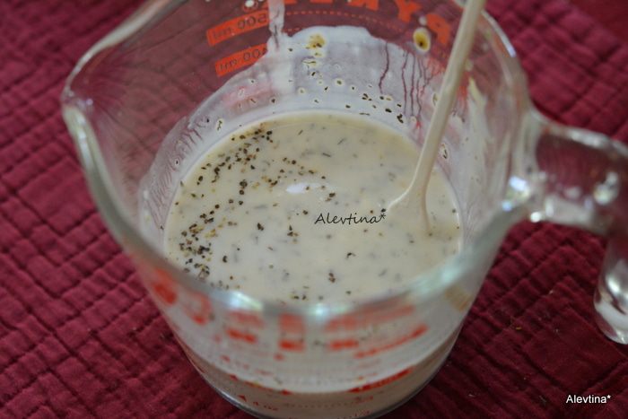 Приготовить заправку, все перемешать.