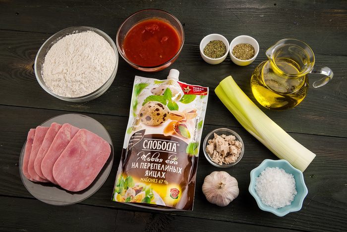 Для приготовления пиццы нам понадобятся следующие ингредиенты.
