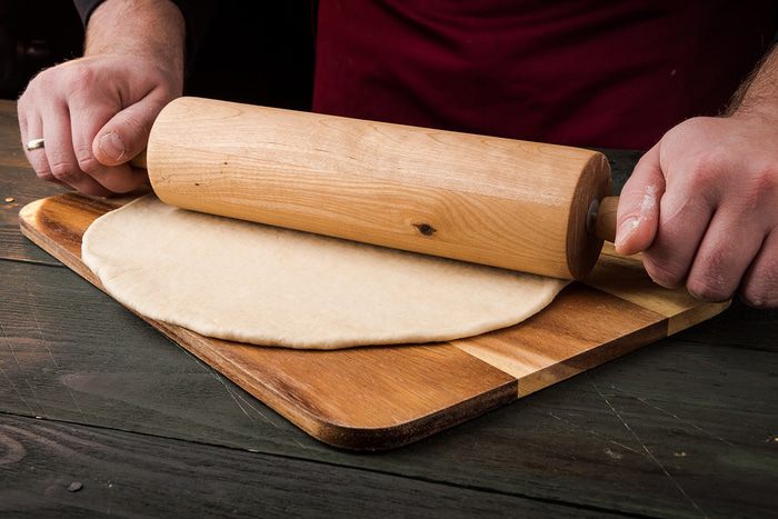 Раскатываем отложенные шарики теста в круг, должно получиться два круга.