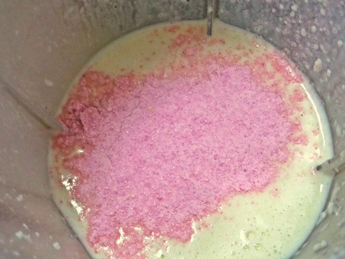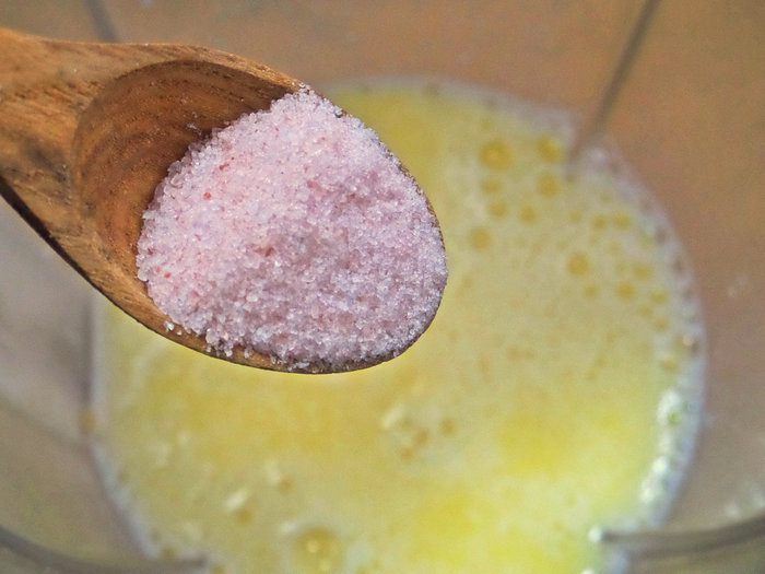 Перелить в кувшин-блендер, добавить соль, сахар.
