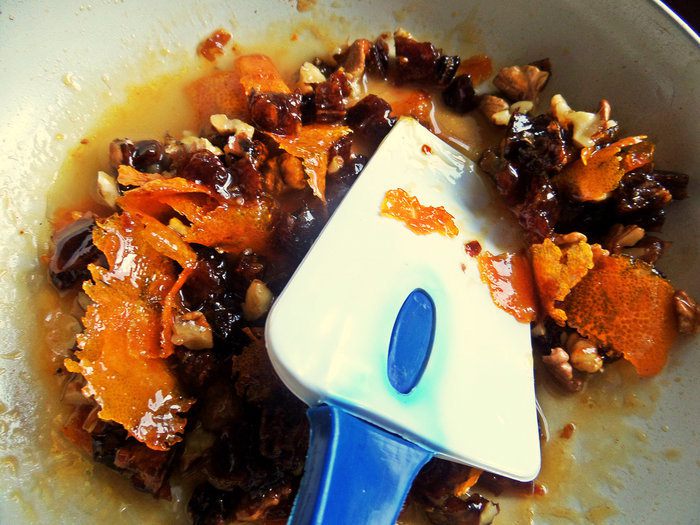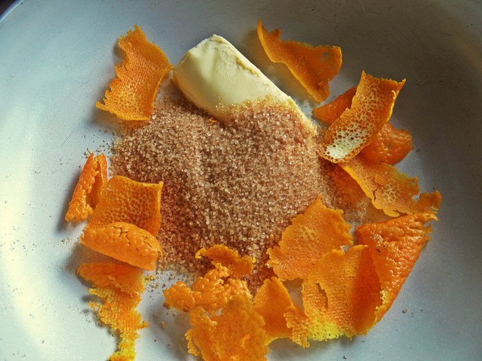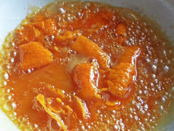 Цедру с маслом и сахаром нагреваем в сковороде.