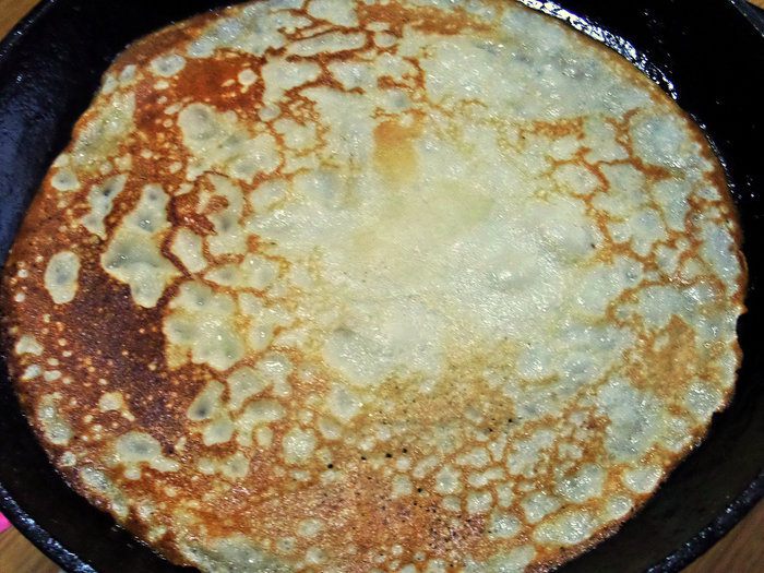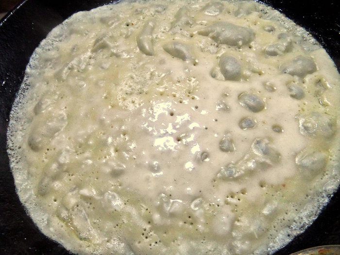 Жарим на смазанной сковороде. У меня небольшая чугунная сковорода.