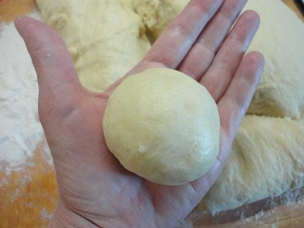 Выкладываем на разделочную доску, присыпанную мукой, и формируем изделия, те, что вам нравятся – булочки, плюшки, пироги, плетенки. На этот раз я готовила булочки весом 70-75 грамм. Получилось 34 штуки.