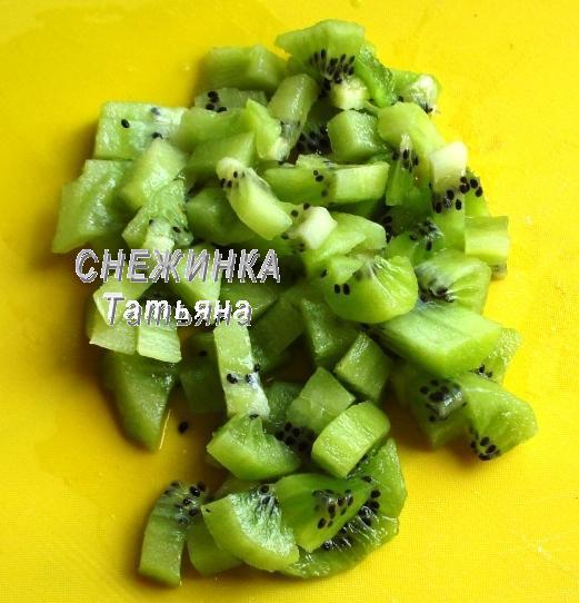 Киви нарезаем на кусочки, размером приблизительно с ягодами земляники.