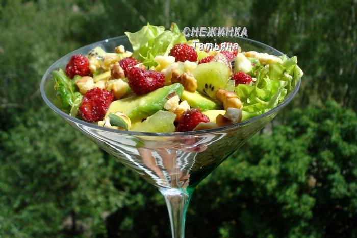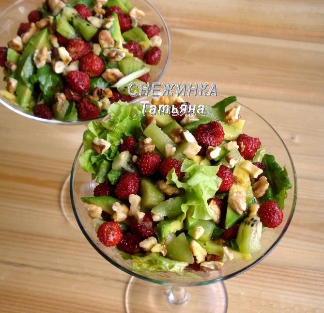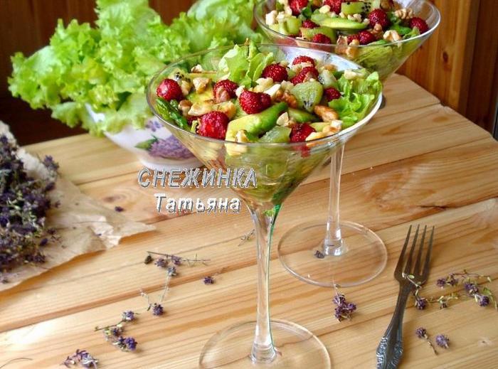 Раскладываем основу в салатники, распределяем землянику, поливаем заправкой.