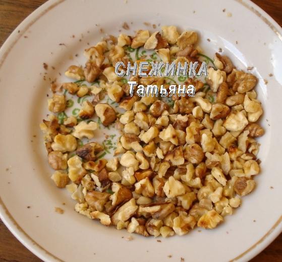 Орехи обжариваем на сухой сковороде. Даем остыть. Измельчаем на крупные кусочки.