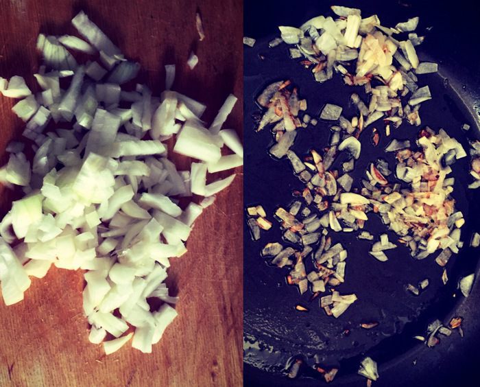Нарезать и обжарить лук. Я его выжариваю. И сразу добавить в кипящую воду (чтобы он не чувствовался).