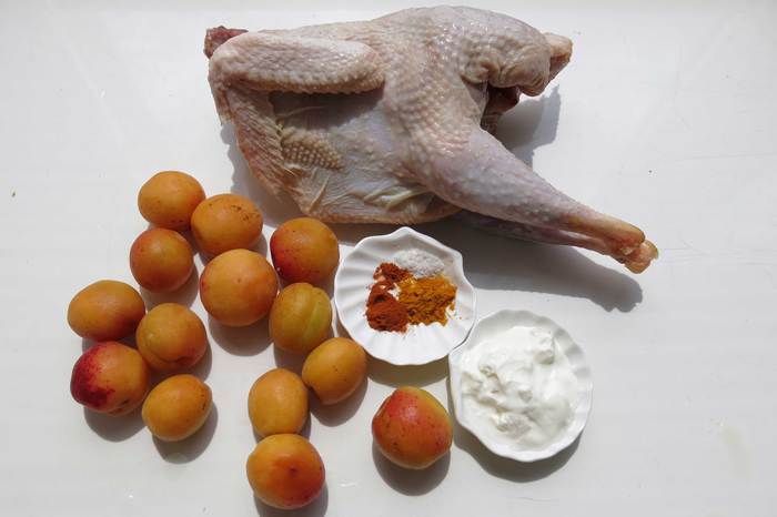 Подготовим птицу, абрикосы и специи, сметану.