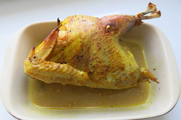 Обед на даче — простое и аппетитное блюдо из сезонных продуктов. Попробуйте цыпленка с абрикосами, птица готовится в рукаве, за счет этого получается сочная за короткое время приготовления, начинка из фруктов придает восточные нотки блюду. Приятного аппетита!