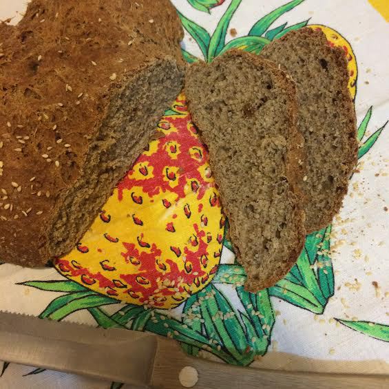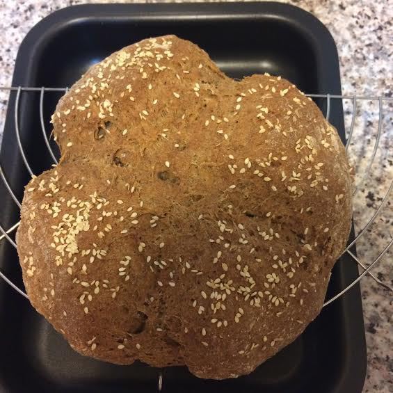 Сформировать круг и выложить в форму. Сделать крестообразный надрез острым ножом.Посыпать кунжутом. Выпекать 50-60 минут.