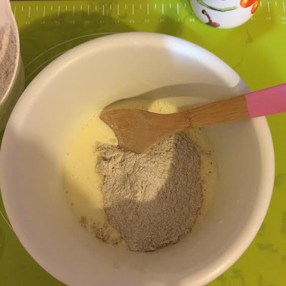 Смешать жидкие ингредиенты с сухими.