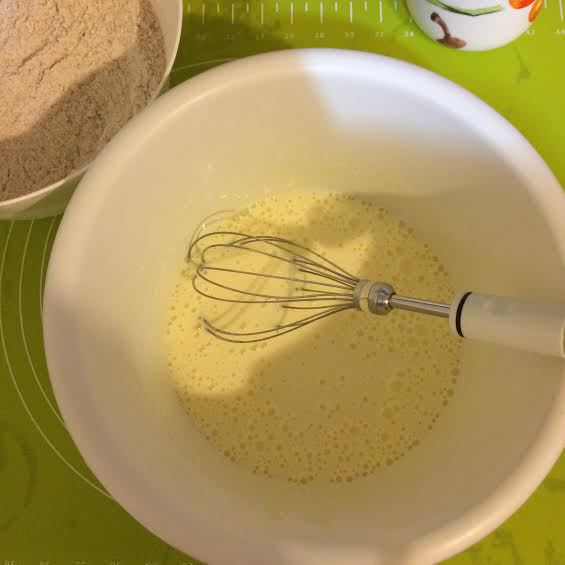 Кефир и яйцо слегка взбить.