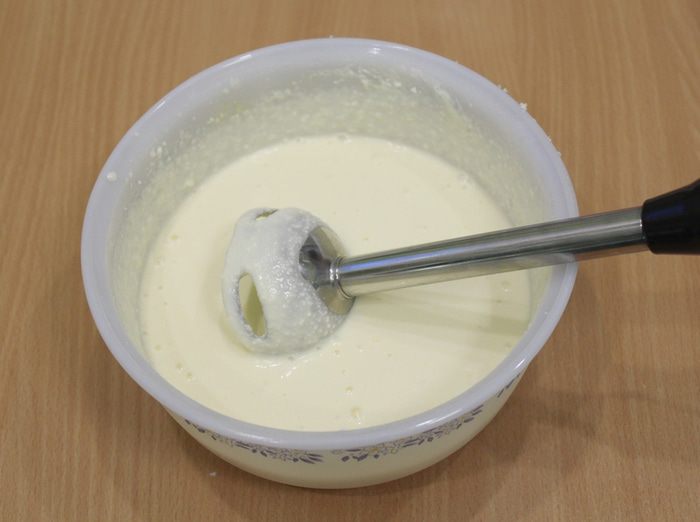 Взбить массу миксером.
