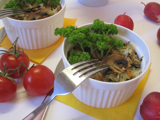 Домашняя запеканка — очень вкусное и полезное блюдо, готовить можно из любых продуктов. Для запеканки я взяла смесь риса «Пропаренного и Дикого» и овощи с грибами. Готовить в пакетиках легко, крупа не пригорает, главное — установить время на таймере и ждать звукового сигнала. Смесь риса в процессе варки сохраняет все полезные и питательные свойства. В этой смеси риса сочетается вкус экзотического дикого риса и пользы пропаренного риса. Контраст белых и черных зерен придает интересный вид готовому блюду. В смеси рис пропаренный и дикий дополняют друг друга, создавая гармоничный вкус. Грибы и овощи вносят свой вкус и цвет в общую палитру запеканки.