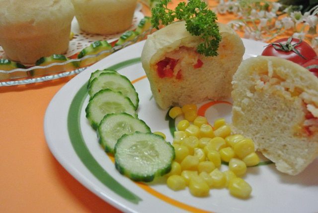 Булочки выпекала в формочках для кекса, очень удобно. Начинка для булочек яркая, ароматная, сытная.