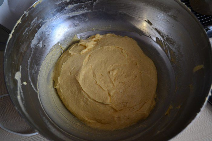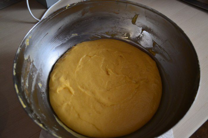 Разложить тесто по формам, заполнив формочки на 1/3. и отправить в теплое место подходить (минут на 30).