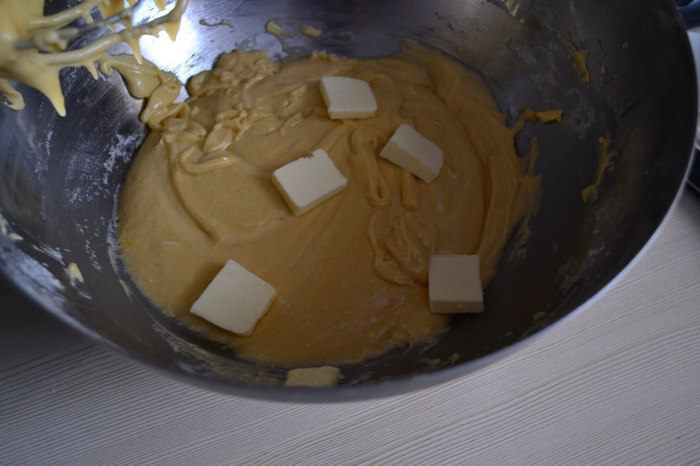 После ночи тесто нужно обмять, вымешать, добавить сухофрукты.