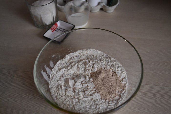 Через 1.5 часа тесто обмять, накрыть пищевой пленкой и убрать в холодильник на ночь. Тесто в холодильнике будет подходить.
