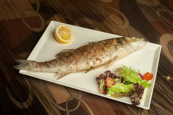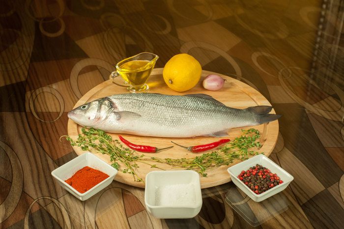 Подготовить рыбу (можно оставить чешую), выпотрошить, вымыть и хорошо просушить брюшко. Посолить, поперчить внутри, положить лимон, тимьян.