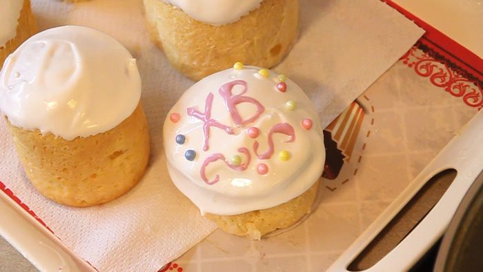 Через 50 минут достаем наши куличики из духовки. Готовность пасхального кулича проверяем длинной зубочисткой. Нужно быстро проткнуть кулич сверху зубочисткой и проверить, чтобы она осталась сухой и чистой.