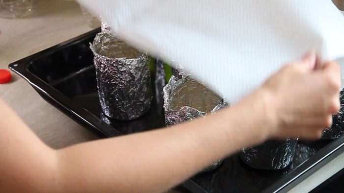 Как я уже и говорила, из использованных форм можно удалить внутренний слой фольги и дальше использовать их как формы для приготовления. Нужно добавить только еще один слой, вместо того, что мы удалили.