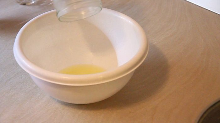 Формы подготовлены. Пока стоит опара, растапливаем 125 г сливочного масла и отставляем его остывать.