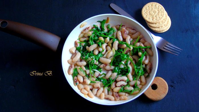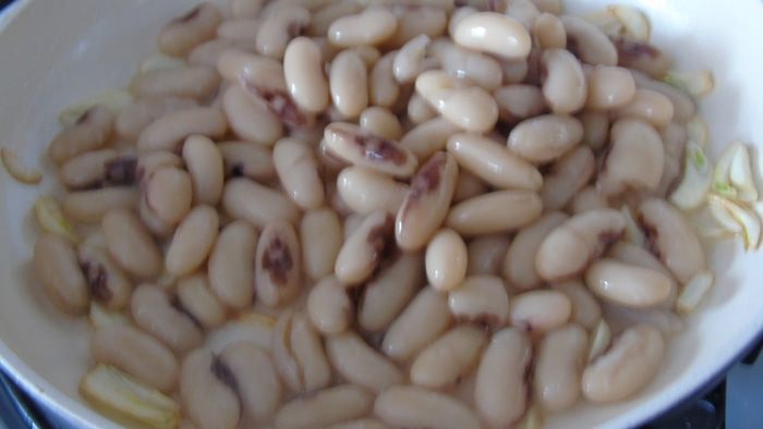 Всыпаем фасоль и держим на огне пару минут.