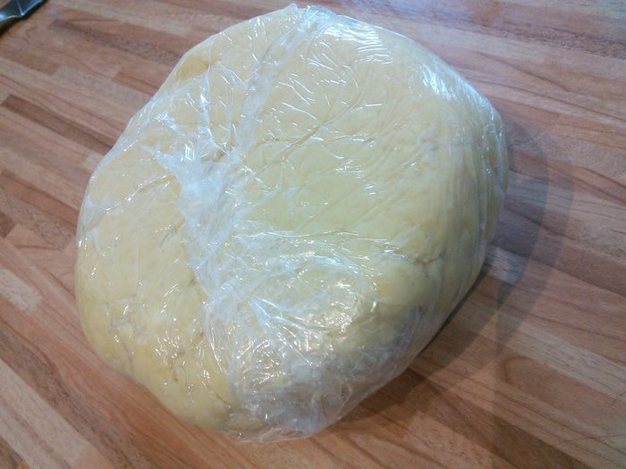 Для теста смешать холодное масло, мелко нарезанное с остальными ингредиентами. По необходимости добавить 1-2 ст л ледяной воды. Собрать тесто в комок, обернуть пленкой и поставить в холодильник на 30 мин.