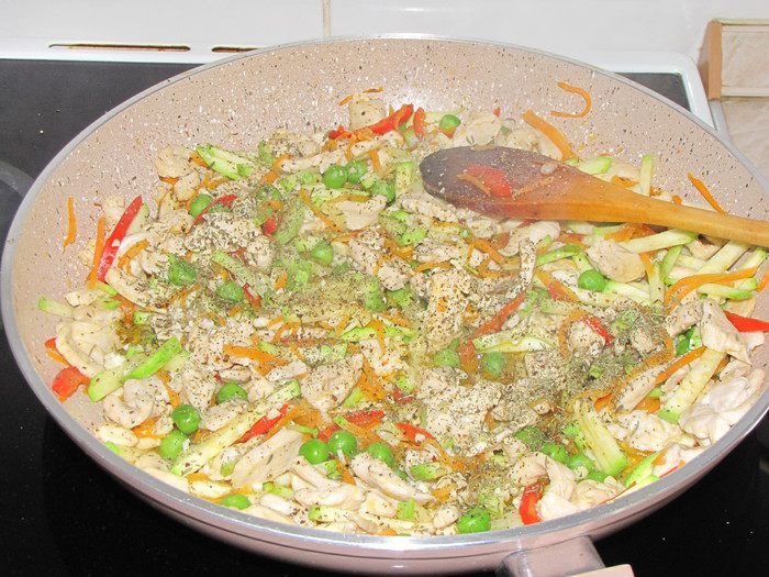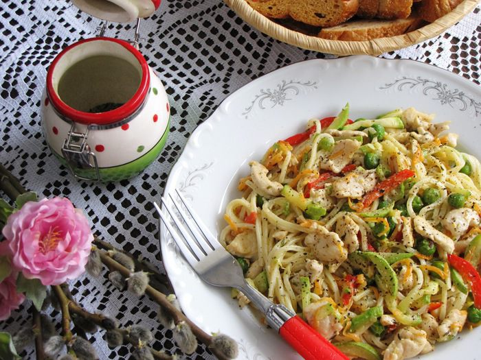 По-итальянски «примавера» означает весна! Давайте приготовим легкое итальянское блюдо с весенними овощами — кабачками, сладким перцем, зеленым горошком, морковью. Желаю всем весенней легкости, тепла и гармонии!