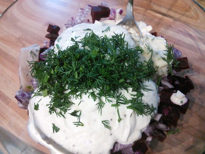 Селедочный салатик в его легкой версии. А если захочется сделать его более сытным, предлагаю добавить нарезанный кубиком вареный картофель. Ммм