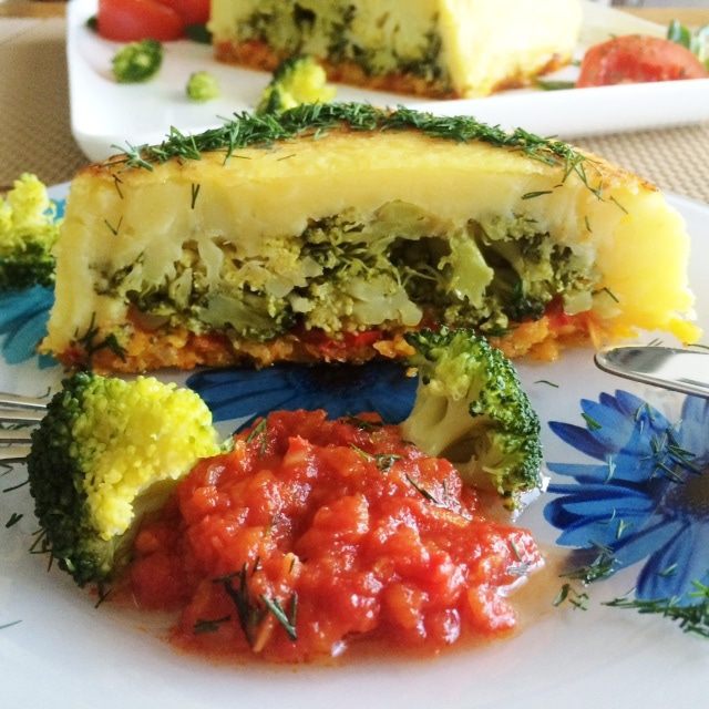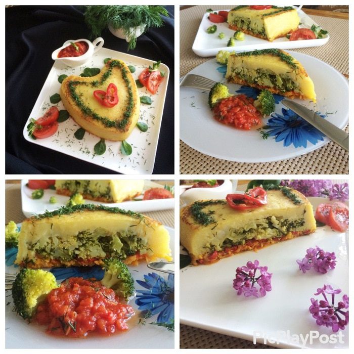 В картофель и морковь предлагалось положить немного крахмала, грамм по 15, я о нем забыла, и нисколько не пожалела. Моя запеканка и так держала форму. Так что, вы на свое усмотрение, хотите можете добавить и крахмал.