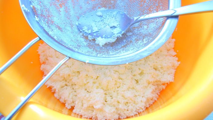Для начинки: творог перетрите через сито.