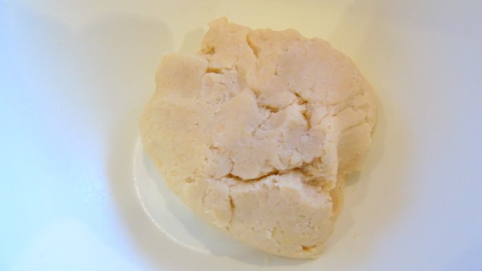 Включите духовку на 180°С. Приготовим основу: в муку добавьте сухие ингредиенты, перемешайте, затем — мягкое сливочное масло и желтки. Замесите тесто. Оно будет мягким.