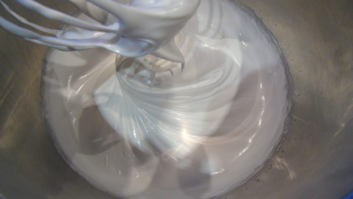 Взбейте белки со щепоткой соли, затем постепенно вводите сахар, продолжая взбивать до устойчивой массы.