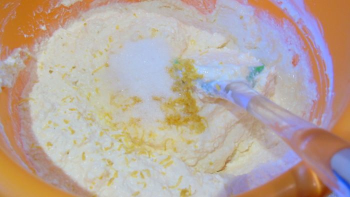 Добавьте цедру с половины лимона и ванильный сахар и снова размешайте.